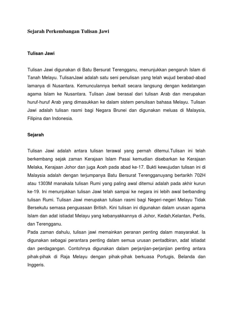 Sejarah Perkembangan Tulisan Jawi Pdf